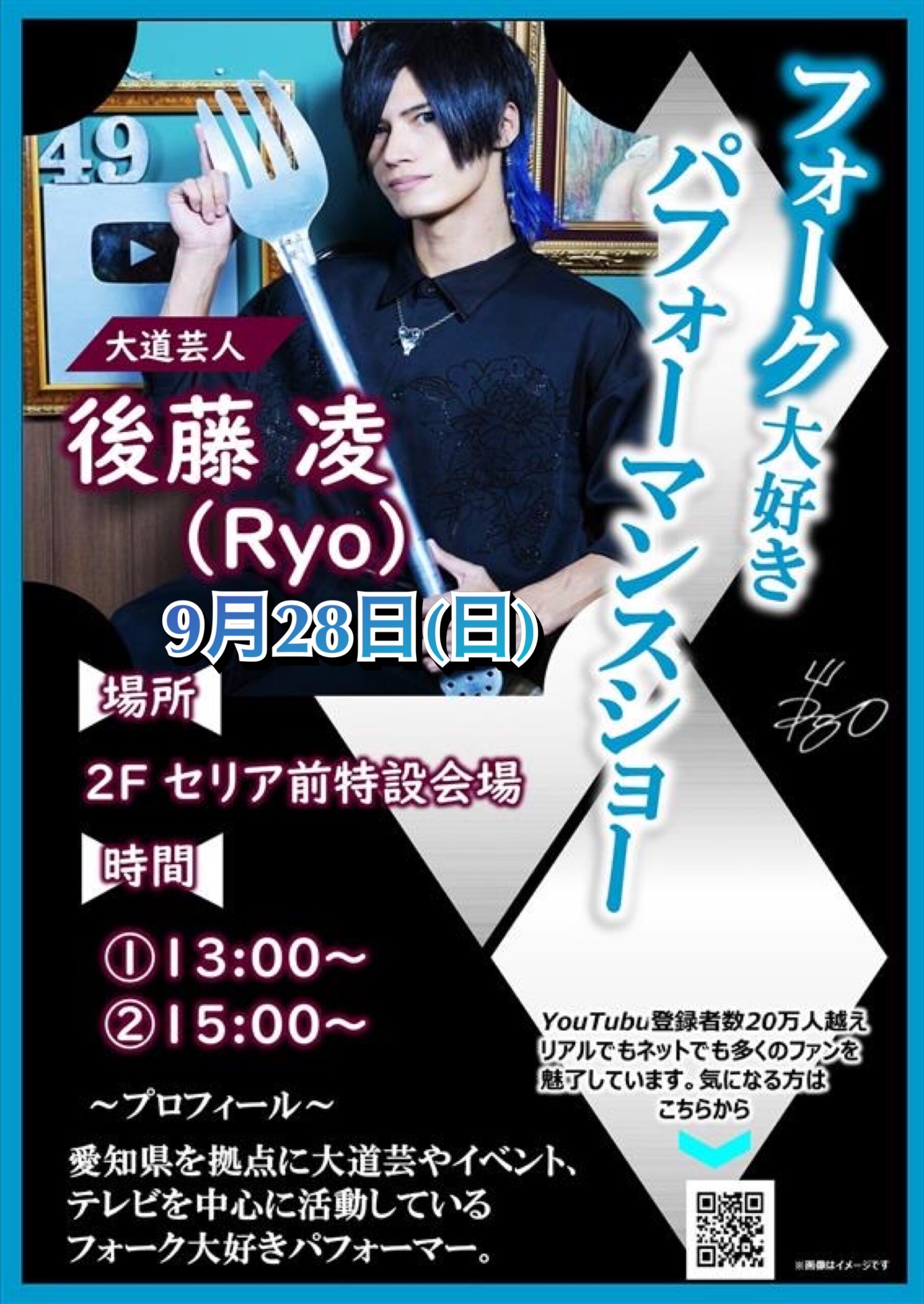 アピタ高蔵寺店の”2Fセリア前特設会場(アピタ館)にて①13:00~②15:00~の2公演ショーさせて頂きます!室内なのでどんな天候でもお楽しみに✨