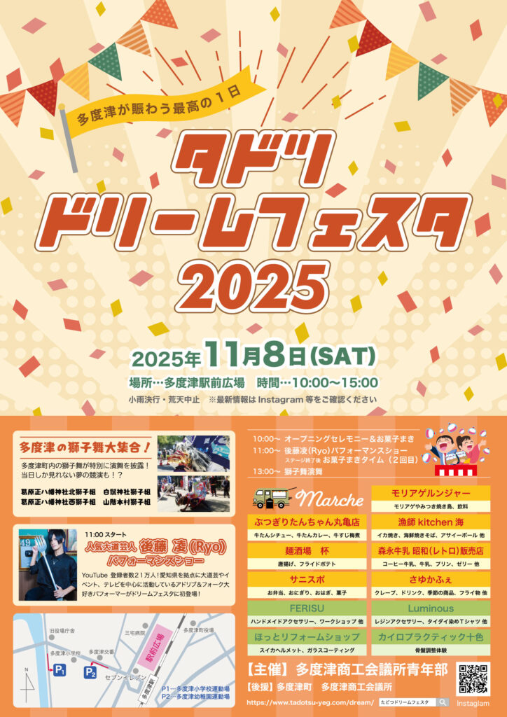 多度津駅前広場で開催される”タドツドリームフェスタ”に11:00からステージ出演させて頂きます(投げ銭はありません)!またその後のお菓子巻きも参加しますので初の香川県!お近くの方はぜひ🍴